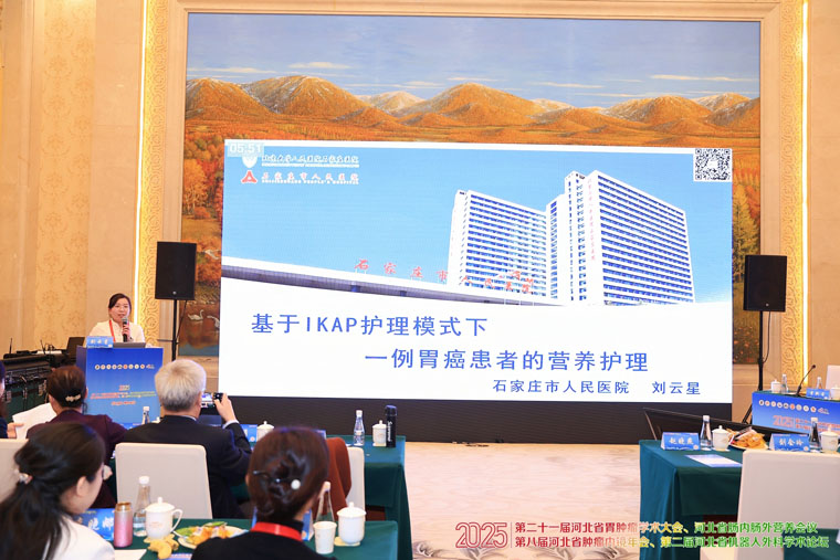 我院外三科李勇教授表示,病例讨论是推动规范化与创新性相结合的重要途径。近年来,护理学科从社会、生理、心理等多维度出发,持续推动专业实践走向系统化与人性化,成效显著。护理部负责人赵晓燕指出,专家们将围绕“数智化全病程管理”“围手术期预康复”、人文建设、免疫护理、VTE防控及营养管理等热点进行分享,旨在深入交流、互学互鉴,将前沿知识带回临床,惠及广大患者。分会场主席、外三科许夕霞主任护师希望与会同仁将所学所感转化为临床实践的动力,共同推进河北省胃肿瘤护理向更精准、更温暖、更高效的方向发展,为患者与家庭带来更优质的照护体验。外三科护士长吕景霞担任会议主持。