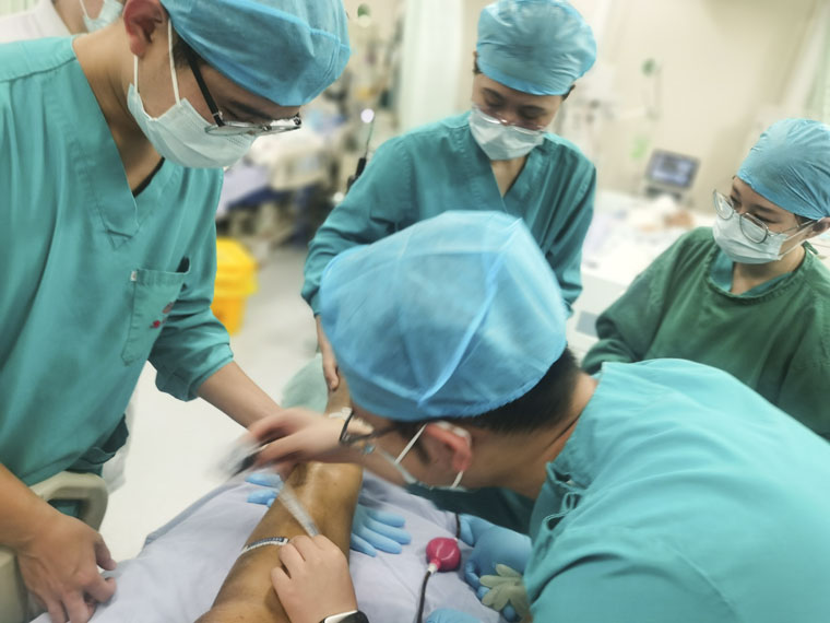面对接踵而至的急危重症患者,心脏血管外科迅速启动应急预案。手术团队、麻醉团队、体外循环团队及手术室护理团队紧密配合,无缝衔接。手术台上,是手术医师精细到毫米的血管吻合、手术室护士快速准确的配合;手术台下,是麻醉医生目不转睛的监测、体外循环团队精准的灌注支持。无影灯亮起,体外循环转流,一针一线将撕裂的血管吻合……从清晨到黄昏,从深夜到黎明,这一群无影灯下的“战士”,用精湛的技术和无眠的守护,为患者托起了新生的希望。